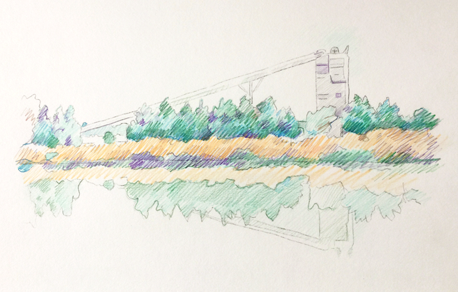 Learn how to use a red under drawing to draw realistic landscape greens in colored pencil.